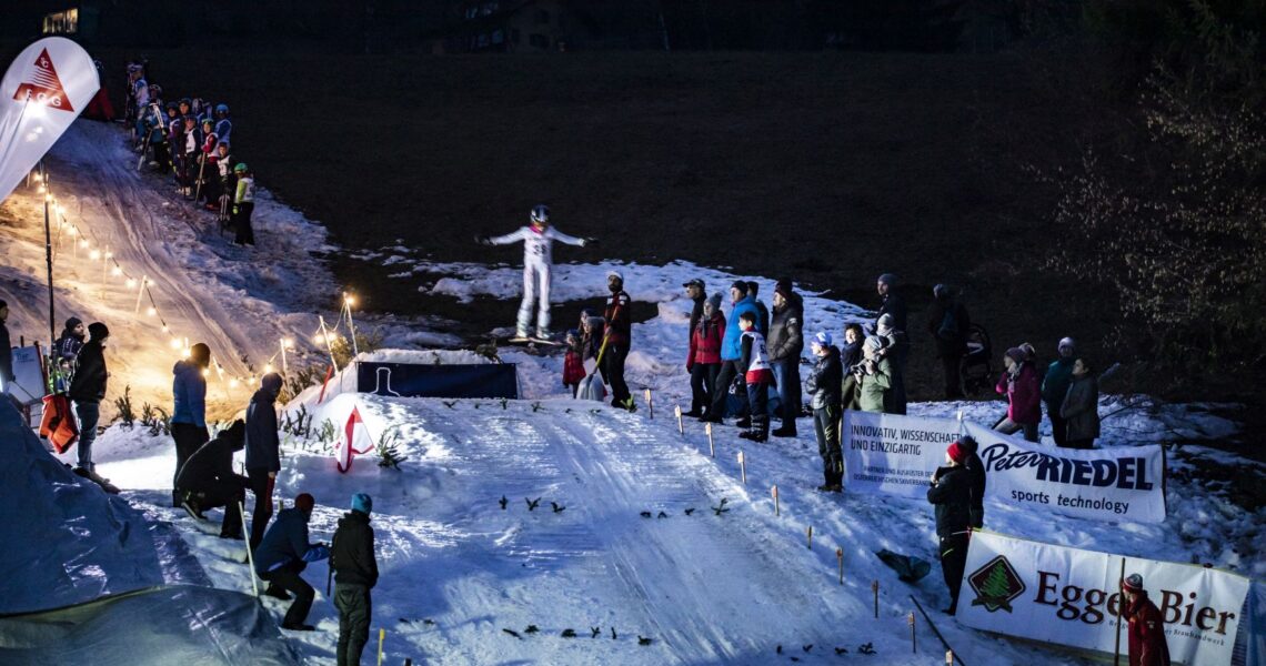 Das vergangene Wochenende stand in der Biathlon-Anlage Junkerau im Zeichen des nordischen Schisports. Alle Wettbewerbe wurden bei Flutlicht ausgeführt, was für alle Teilnehmer etwas Besonderes war. Eröffnet wurde am Freitag-Abend mit der gemeinsamen Langlauf-Vereinsmeisterschaft vom SC Egg und dem WSV Andelsbuch. Knapp 65 Starter (davon